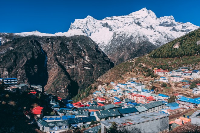 On day 4 we arrived at Namche Bazar, a historic trading town at 12,000 ft that’s situated on the slope of an arch-shaped mountain, and is known as the gateway to the Himalayas. At first glimpse we knew this town was special, and it wasn’t just because of the Irish Pub that we passed by (which so happens to claim it’s the highest pub in the world). Namche was our home for the next two days to help acclimate us to the altitude, so we enjoyed perusing through the different markets, eating, and reading (especially Moira who picked up a copy of Into Thin Air by Jon Krakauer and could not.put.it.down!)